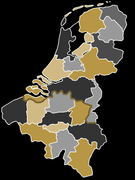 west vlaanderen oost vlaanderen antwerpen vlaams brabant waals brabant hennegouwen namen luxemburg luik belgisch limburg zeeland noord brabant limburg zuid holland utrecht gelderland noord holland flevoland overijssel drenthe friesland groningen